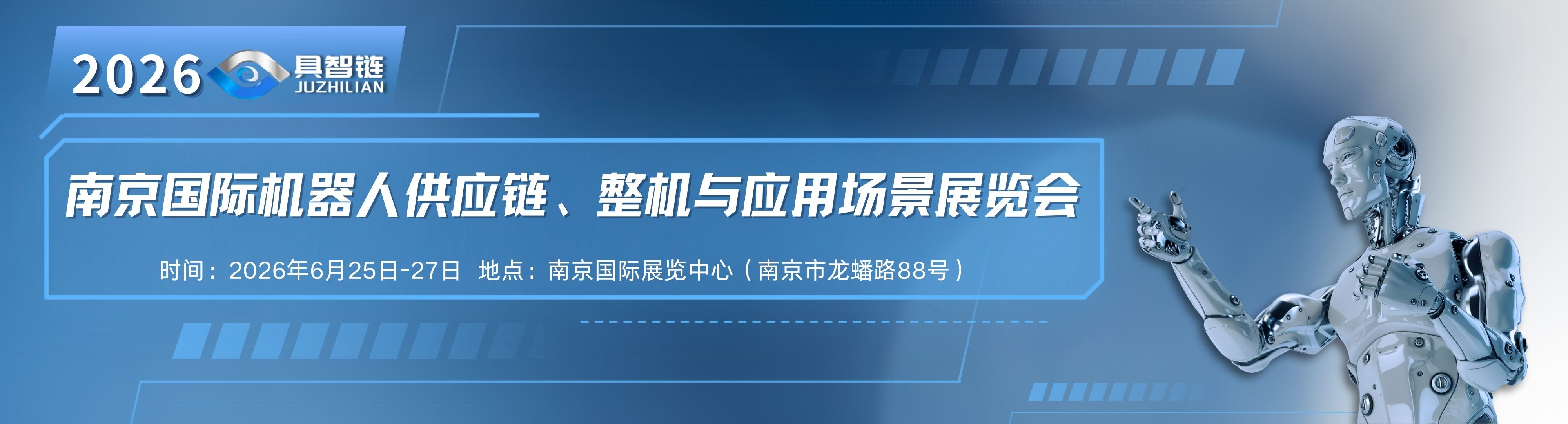 为深入贯彻国家发展新质生产力战略部署,落实工信部《“机器人+”应用行动实施方案》,定于2026年6月25-27日在南京举办“2026中国具身智能机器人产业创新大会”暨”2026南京国际机器人供应链、整机与应用场景展览会”(简称:2026南京具智链展)。